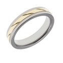 Vous pouvez faire de cette alliance fantaisie en titane et or jaune 18 carats/750 millièmes le gage de votre amour pour l'homme de votre vie. Cet anneau de 5 mm de large porte une bande centrale en or joliment enserrée par les anneaux latéraux en titane. Le bijou est régulièrement entrecoupé de stries obliques.