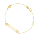 Ce très joli bracelet identité en or jaune 18 carats/750 millièmes pour fille ou garçon se compose d'une élégante plaque rectangulaire aux angles adoucis, montée sur une délicate chaîne agrémentée d'un petit coeur plat. Ce ravissant bijou mixte sera du plus bel effet au poignet de l'enfant qui le portera.