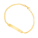 Le style classique de ce bracelet d'identité mixte en or jaune 18 carats/750 millièmes lui permet de traverser le temps sans se démoder. Ce bijou pour garçon ou fille se compose de mailles marines barrées et d'une plaque rectangulaire personnalisable avec le prénom de l'enfant à qui il est destiné ou avec une autre inscription.