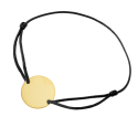 Bracelet cordon noir en plaqué or, plaque ronde 19.5 mm
