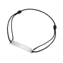 Ce bracelet en argent rhodié 925 millièmes est un bijou personnalisable d'une grande sobriété. Une plaque rectangulaire de 6 mm légèrement bombée à la surface lisse est reliée à un cordon noir. Ce bijou mixte dont la taille se règle grâce à 2 noeuds coulissants est proposé à un prix abordable.