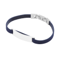 Bracelet cuir bleu en acier, plaque rectangle 9 mm