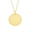 Collier en plaqué or plaque ronde 25 mm, motif pointillé