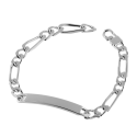Identité en argent, plaque rectangle 6,5 mm et maille cheval alternée 1-2