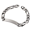 Identité en argent vieilli, plaque rectangle 9 mm et maille cheval alternée 1-3